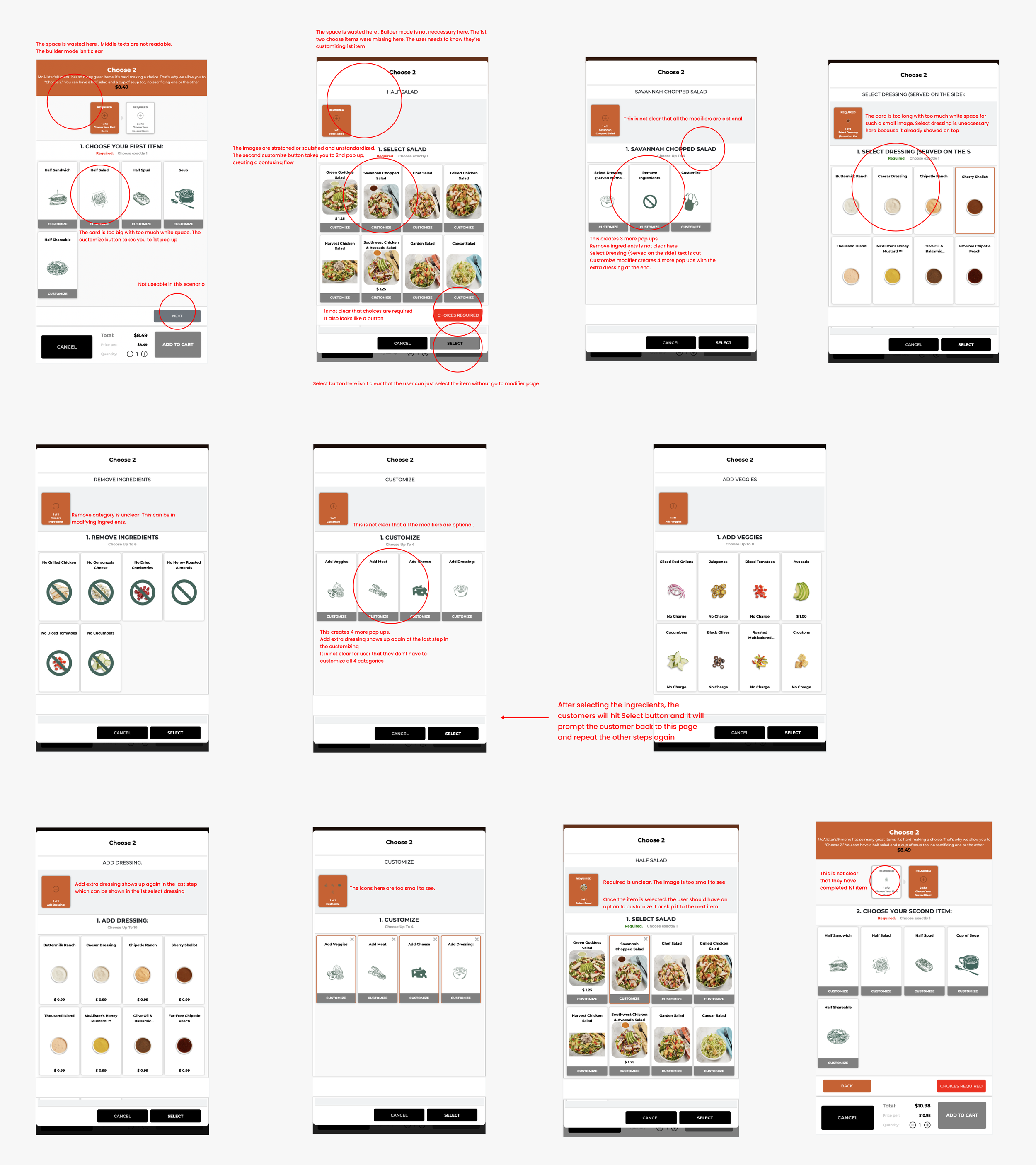 In this example, customers are prompted to select two items from the 'Choose 2' option. However, after choosing the first item, they are required to make additional adjustments that they may not want to, and they are continually prompted to do so until they comply. This repetitive process can lead to frustration, especially for a 'Choose 2' selection.